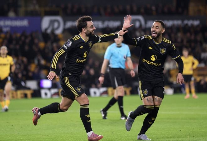 北京時(shí)間12月9日,2025-26賽季英超第15輪,曼聯(lián)客場4-1擊敗副班長狼隊(duì),積分追平切爾西,升至積分榜第6。B費(fèi)傳射建功+點(diǎn)球破門,貝萊加德扳平,姆伯莫、芒特破門。