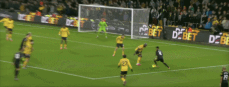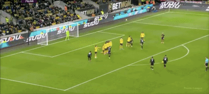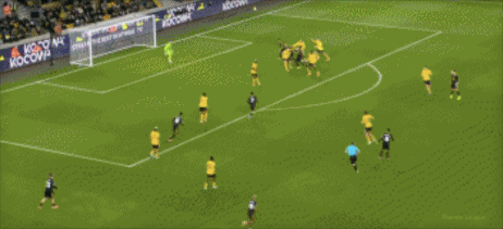 第45+2分鐘,沃爾費(fèi)禁區(qū)左側(cè)倒三角傳球,貝萊加德中路鏟射破門,1-1!狼隊(duì)扳平。